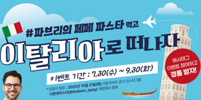 [롤링파스타 X 파브리 셰프 콜라보 경품 이벤트 당첨자 안내] 2025년 7월 30일부터 9월 30일까지 진행된 롤링파스타 X 파브리 셰프 콜라보 경품 이벤트의 당첨자가 발표되었습니다. - 1등: 항공권 기프트카드 200만원 (1명) - 2등: 고프로 히어로13 (5명) - 3등: 에어팟 프로2 (10명) - 4등: 롤링파스타 모바일금액권 50,000원권(50명) 당첨되신 모든 고객님께 진심으로 축하드리며, 당첨자 분들께는 더본코리아 공식 계정(@theborn_tasty)을 통해 개별 DM이 발송되었습니다. ※DM으로 전달드린 링크를 확인하시어, 경품 지급을 위한 정보를 기한 내에 입력 부탁드립니다. - 1~3등 당첨자 : ~ 25년 11월 4일(화) (정보 입력 및 제세공과금 납부) - 4등 당첨자 : ~ 25년 10월 30일(목) (정보 입력) 보내주신 많은 관심과 참여에 감사드리며, 앞으로도 롤링파스타에 많은 사랑과 성원 부탁드립니다! 감사합니다. 👉 인스타그램 공지 바로가기https://www.instagram.com/p/DMtviXSyKYT/
